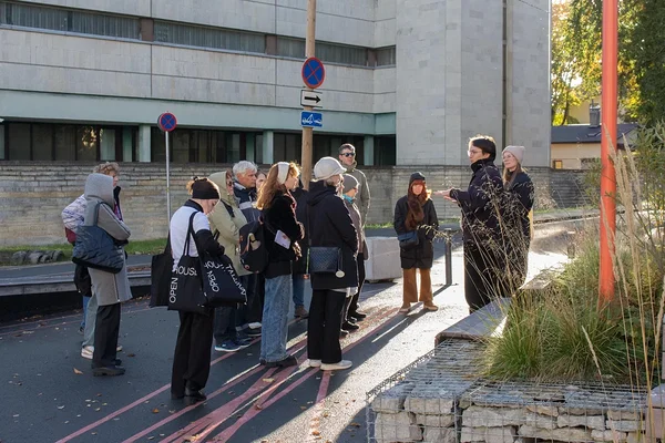 Maarja Tüür ja Kerttu Kõll viisid meid „Kalaranna kvartali maastikuarhitektuuri” ekskursioonile. Maastikuarhitektid andsid ülevaate tänavu kevadel lõplikult valminud kvartali ajaloost, projekti loomise kontseptsioonist kui ka erinevatest väljakutsetest läbi tööprotsessi. Tutvusime haljastus- ja valgustuslahendustega, väikeobjektide ja nende funktsioonidega, erinevate taimeliikidega, hooldusetappidega ning ka nutikate võtetega seoses kvartali maa-aluse garaažiga.